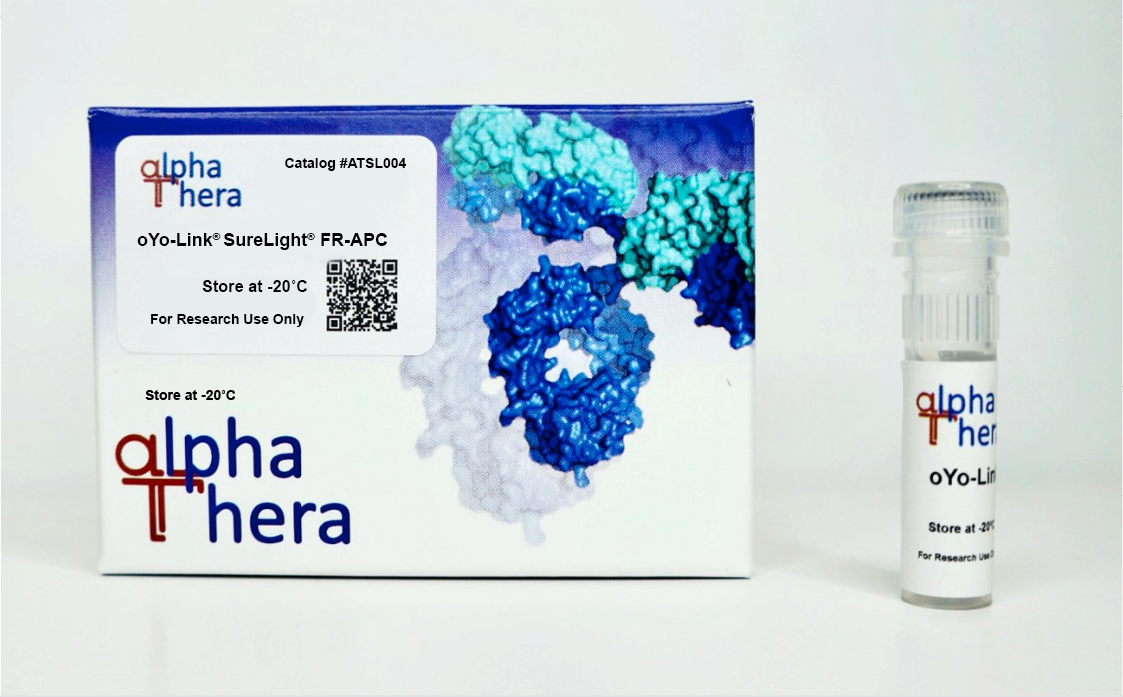 The antibody labeling procedure simply requires mixing oYo-Link® SureLight® FR-APC with the desired antibody followed by photocrosslinking with non-damaging black light (365 nm).